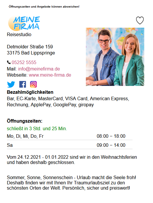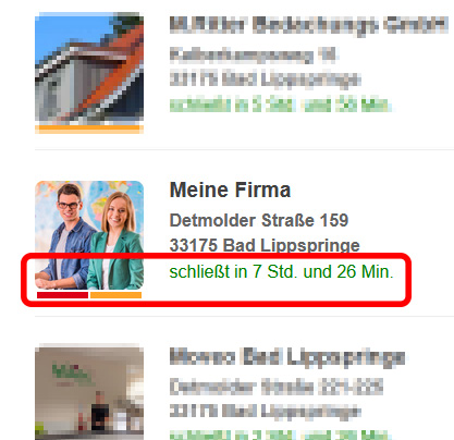 Hilfreich ist die Anzeige der verbleibenden Öffnungsdauer. Kunden sehen direkt, ob ein Standort jetzt geöffnet hat, bzw. wann er wieder öffnet.