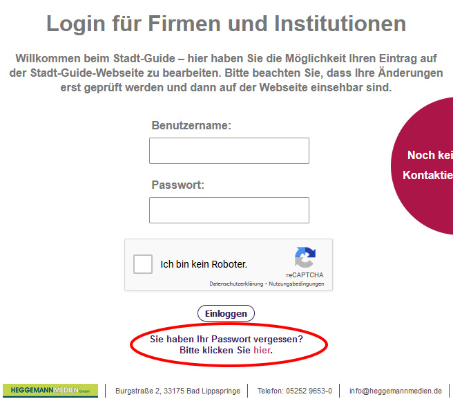 Es gibt zwei Stellen über die Sie sich im Stadt-Guide anmelden können: